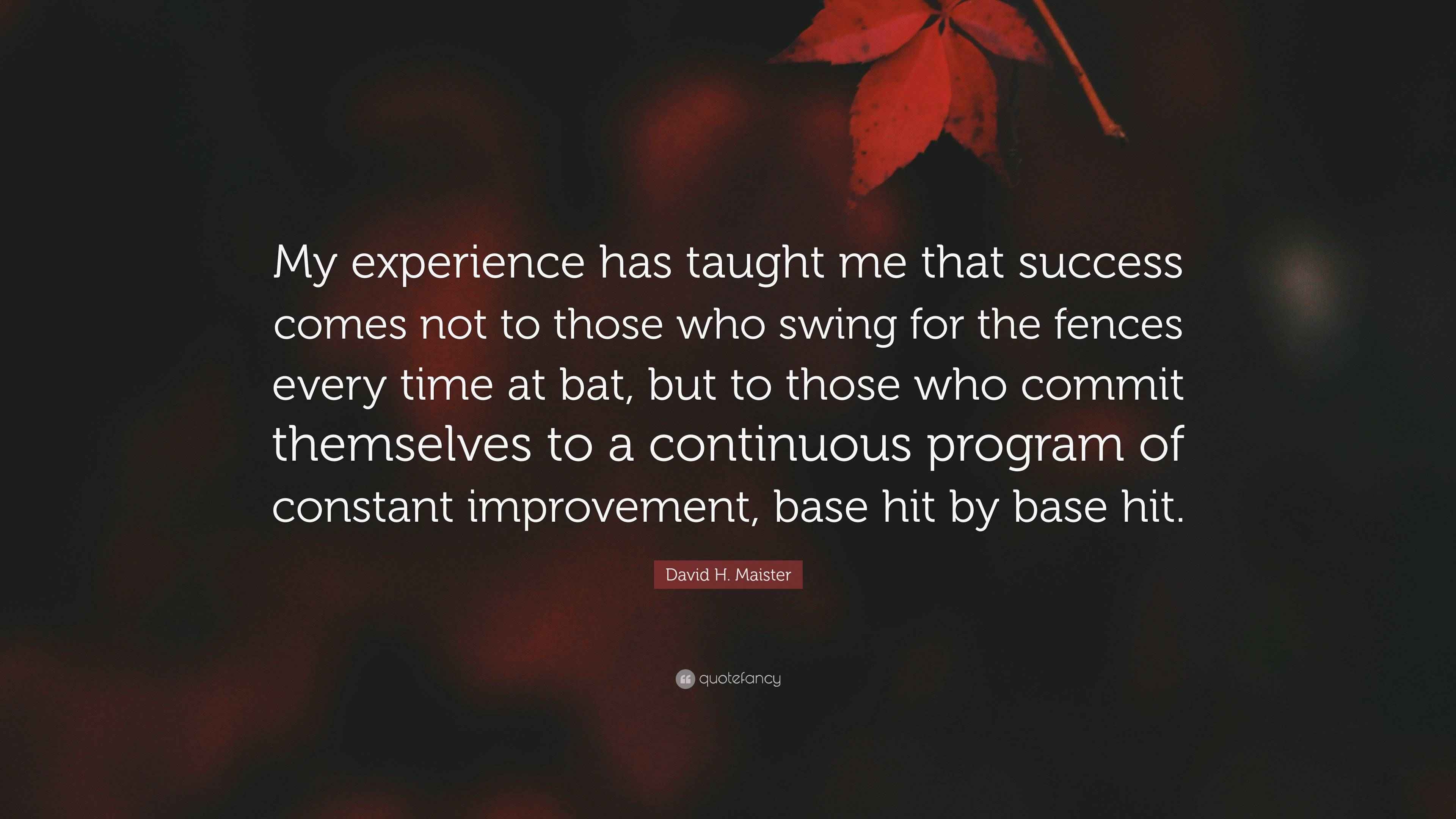 David H. Maister Quote: “My experience has taught me that success