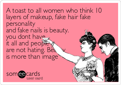 A toast to all women who think 10 layers of makeup, fake hair fake