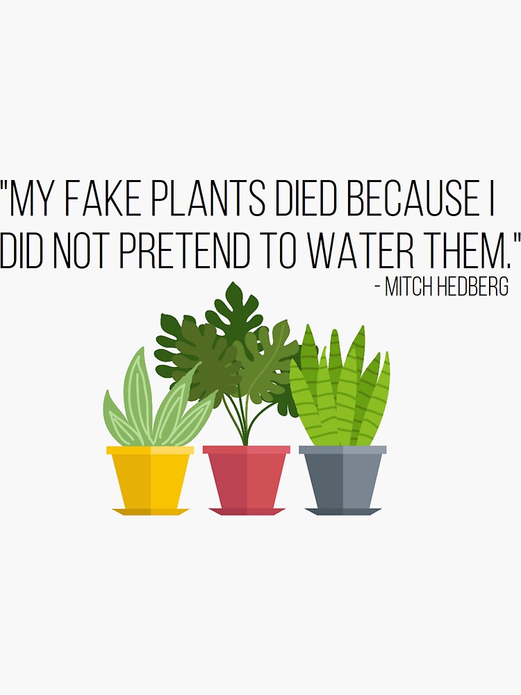 My Fake Plants Died Quote Meaning – For the word puzzle clue of my fake plants died because i did not ____ to water them mitch hedberg, the Sporcle Puzzle Library found the following results. Explore more crossword clues and answers by . If you need plants to decorate your house but are worried about mosquito, Cocoboo’s fake leaves can solve your troubles. .