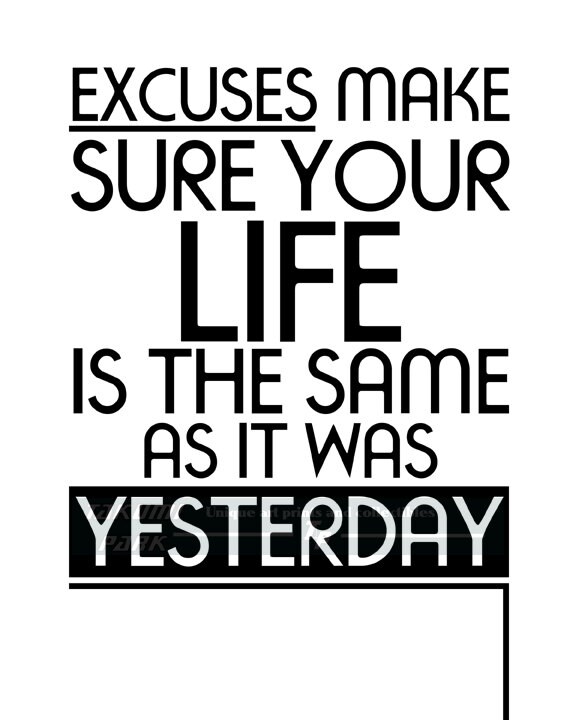 Excuses Make Sure Your Life is the Same as It Was Yesterday, No